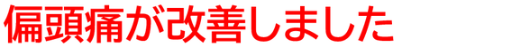 偏頭痛が改善しました!薬も飲んでいません!本当に不思議なんですが、頭の中にいた頭痛のタネをまったく感じなくなりました。すごいです。普通の暮らしができて、毎日幸せな気分です。